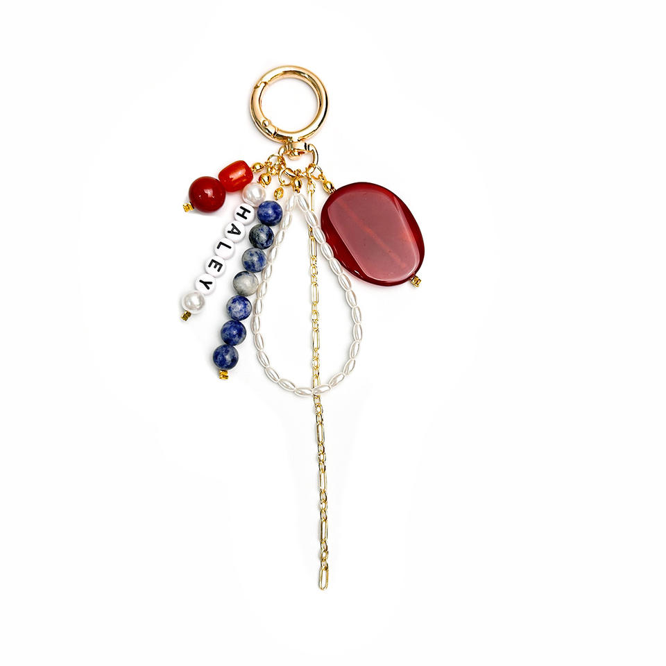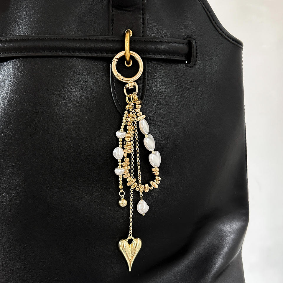 Luxury Gold-plated Chain Bead Pendant Keychain with Pearl Heart-shaped Letter Beads and Oval Accessories