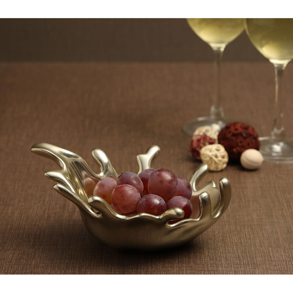 จานเสิร์ฟของว่าง3ชามสีทองพร้อมที่จับใบไม้ชามผลไม้และถั่วโลหะสำหรับตกแต่งบ้านและของขวัญ