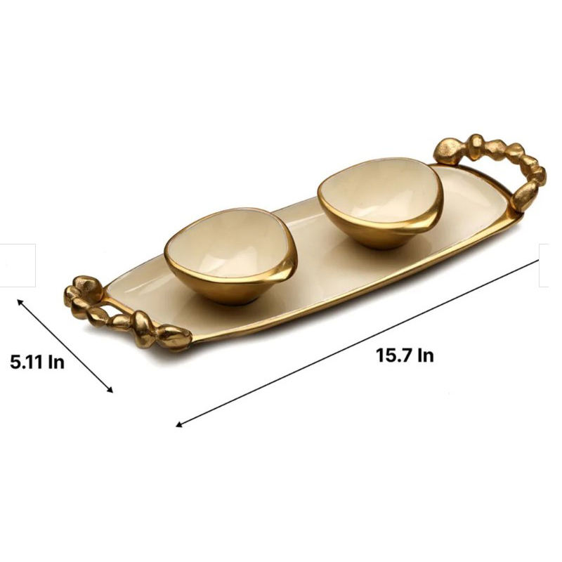 ชามพร้อมถาดสำหรับตกแต่งบ้านสีทองสุดหรู