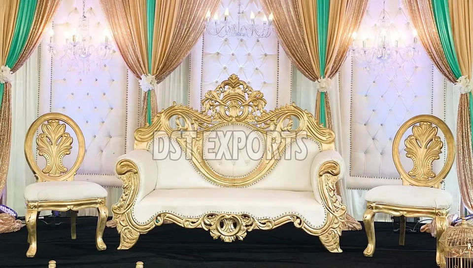 Luxury Golden Finish Wooden Carved Wedding Sofa