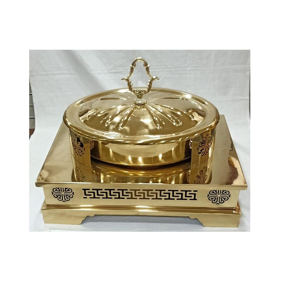 เครื่องครัวสีทองหรูหราสำหรับร้านอาหารใช้ในบ้านอุ่นอาหารจานบุฟเฟ่ต์พร้อมฝาปิดจานอุ่นอาหารสำหรับใช้ในงานแต่งงานและงานเลี้ยง