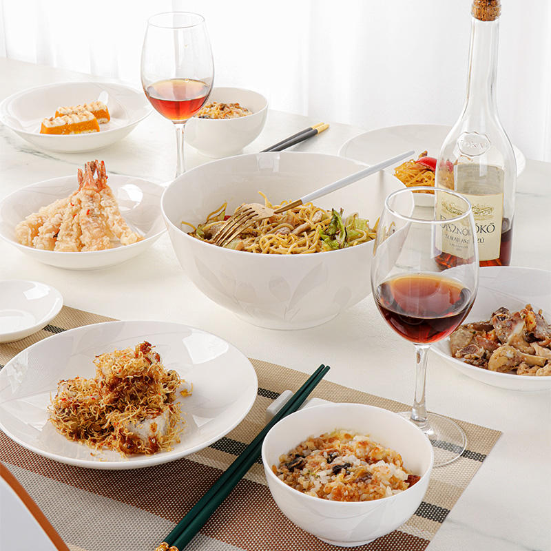 ชุดจานอาหารลายพืชแบบจีนโบราณ ขอบทองหรูหรา ทำจากกระเบื้อง Bone China สีขาว สำหรับตกแต่งโต๊ะอาหารที่บ้านและร้านอาหาร