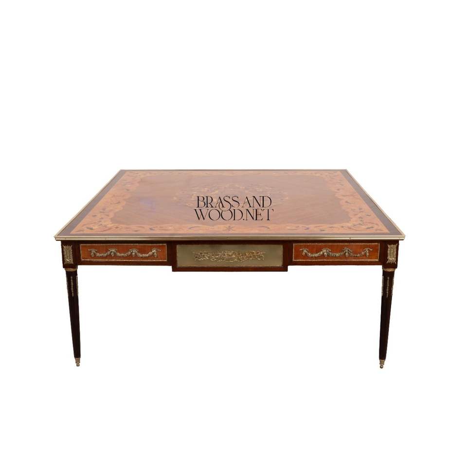 โต๊ะกาแฟไม้หรูหราประดับลายไม้ฝังทองเหลืองโบราณและลวดลายดอกไม้ประณีตสำหรับห้องนั่งเล่นสไตล์คลาสสิก