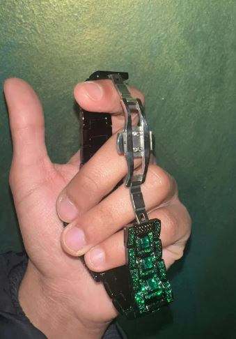 นาฬิกาข้อมือหรูหราประดับมรกตสีเขียว สไตล์ฮิปฮอป ขนาด 46 มม. กันน้ำ 30 บาร์ ตัวเรือนสแตนเลสสตีล ดีไซน์ทันสมัย