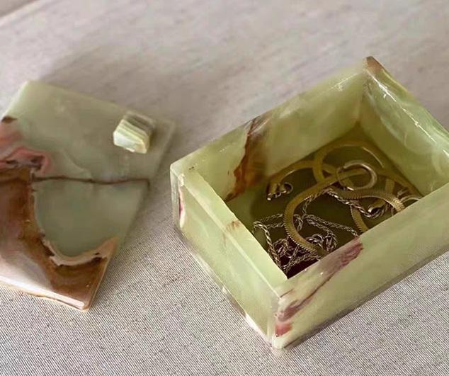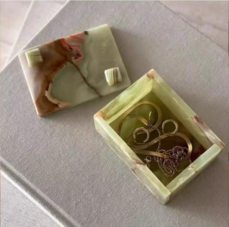กล่องใส่เครื่องประดับหินออนิกซ์สีเขียวสุดหรู ทำด้วยมือจากหินออนิกซ์ธรรมชาติ กล่องเก็บของตกแต่ง ของขวัญขายส่ง