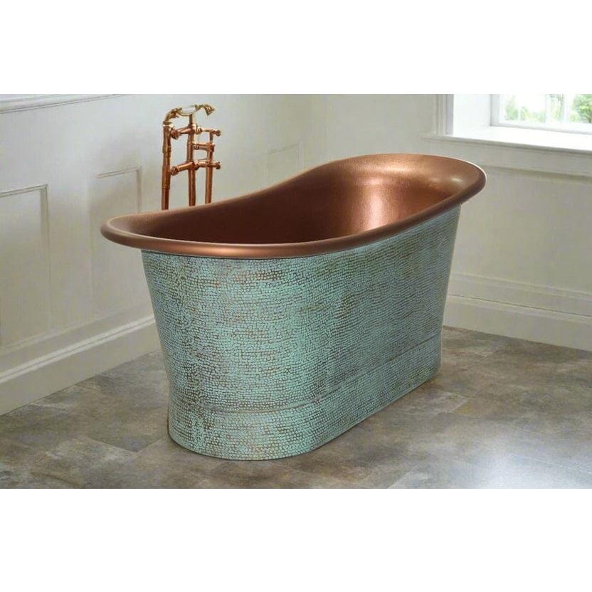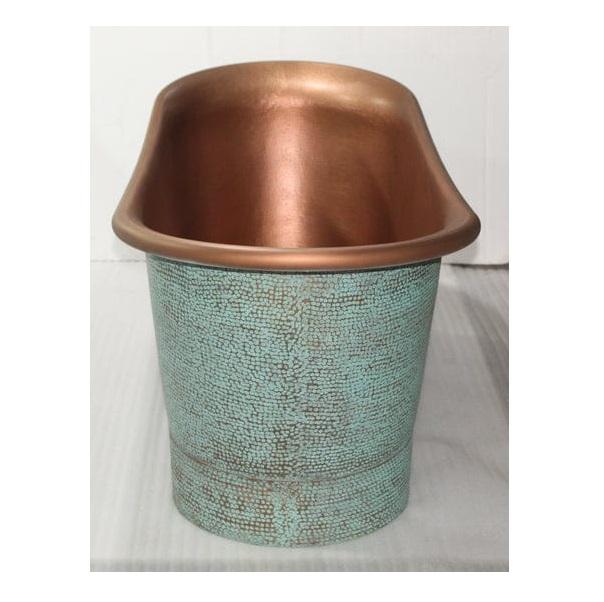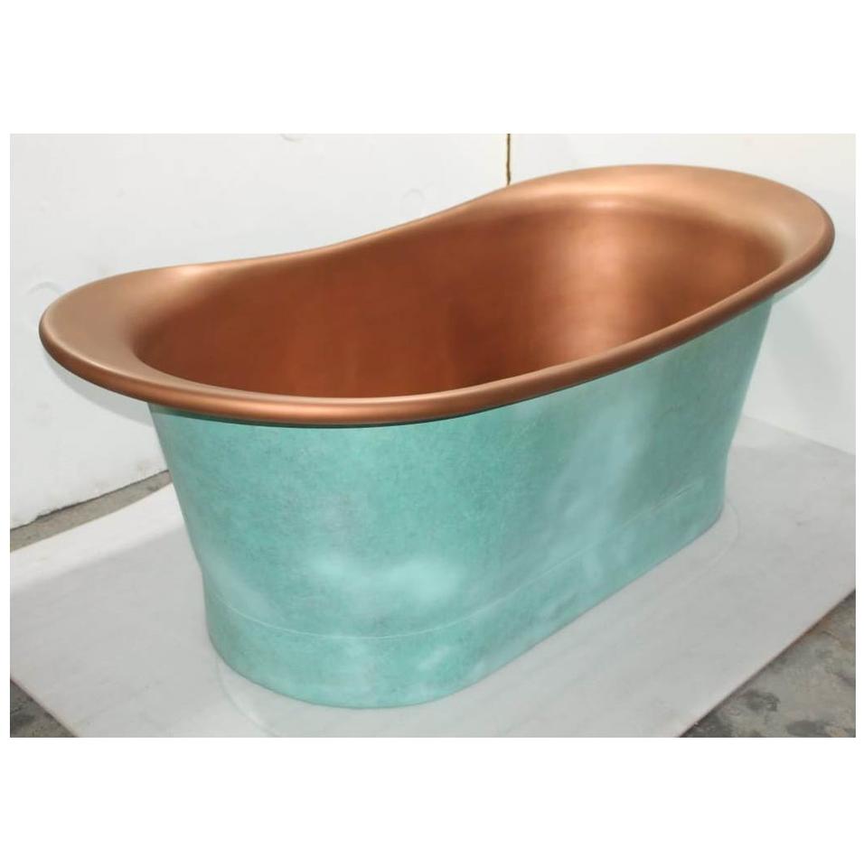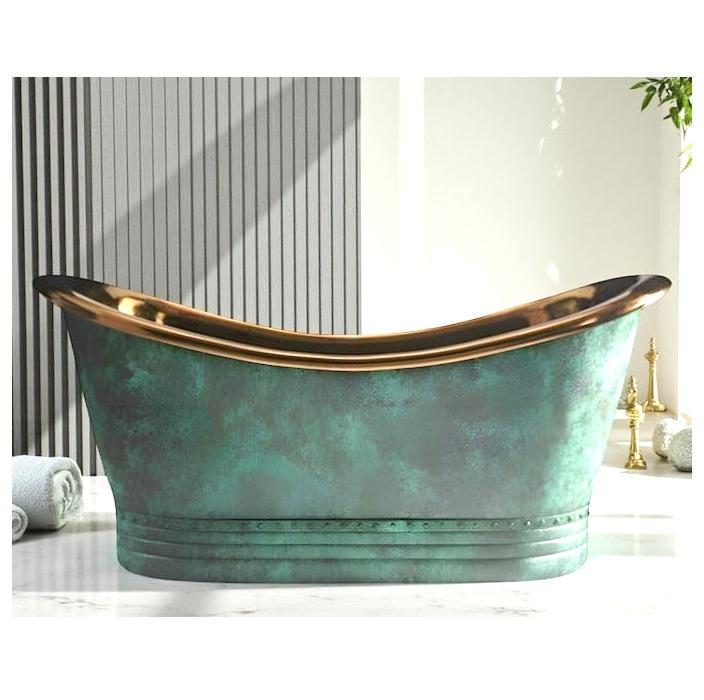 อ่างอาบน้ำทองแดงแบบลอยตัวสีเขียวพาติน่าสุดหรู งานแฮนด์เมด ดีไซน์โบราณ ทนทาน เป็นมิตรกับสิ่งแวดล้อม รูปทรงวงรี สวยงาม เหมาะสำหรับโรงแรม