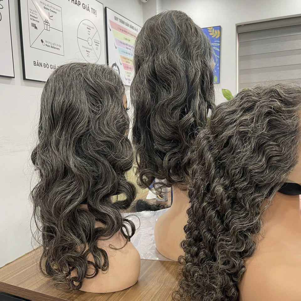 วิกผมลูกไม้ HD สีเทาหรูหรา ผมเวียดนามแท้แบบดิบ ผมมนุษย์แท้แบบหยิก ต่อผมคุณภาพพรีเมียม