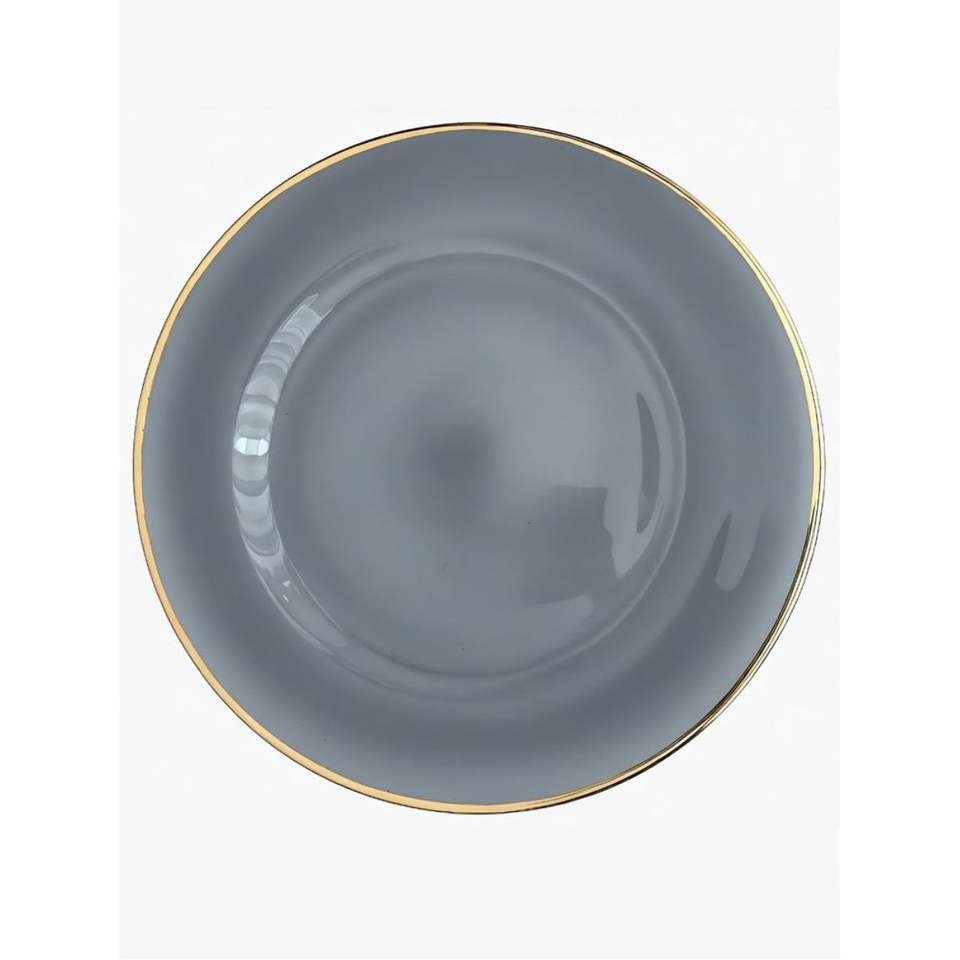จานรองอาหารโลหะสีเทาหรูหรา ขอบสีทอง ทรงกลม ทำจากสแตนเลส เหมาะสำหรับงานแต่งงาน ของตกแต่งโต๊ะอาหาร อุปกรณ์จัดงานเลี้ยง