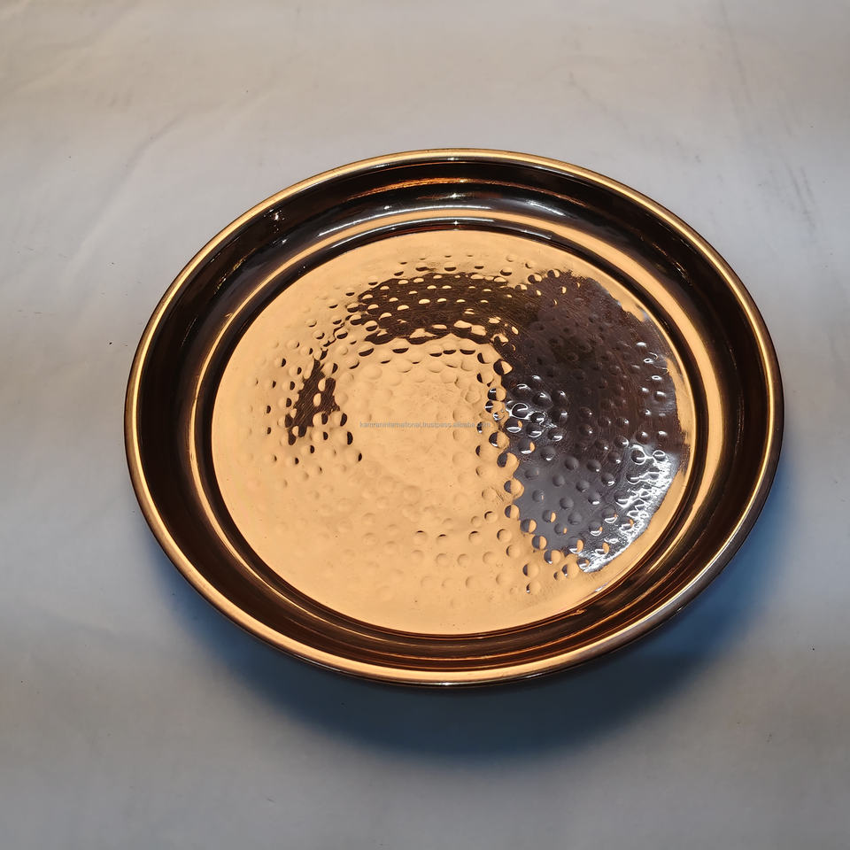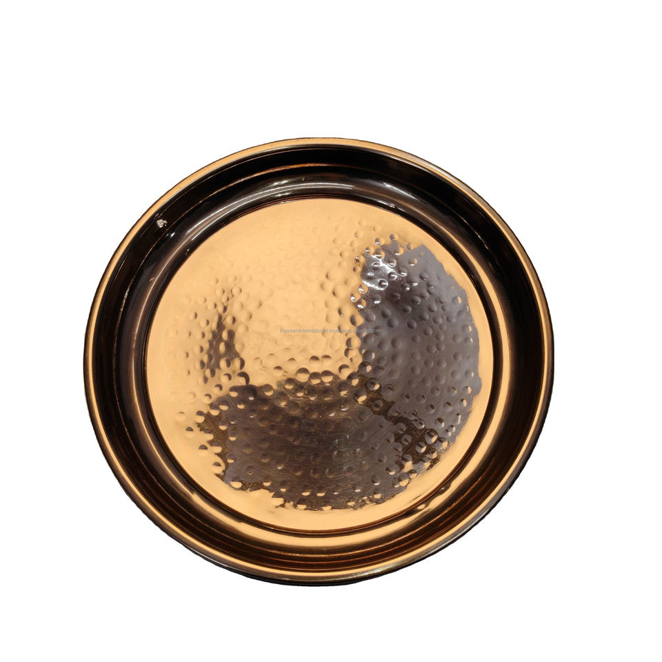 ถาดเสิร์ฟทรงกลมสแตนเลสสีโรสโกลด์แบบตอกลายสุดหรู – จานโลหะตกแต่งแบบมันเงาสไตล์โมเดิร์น