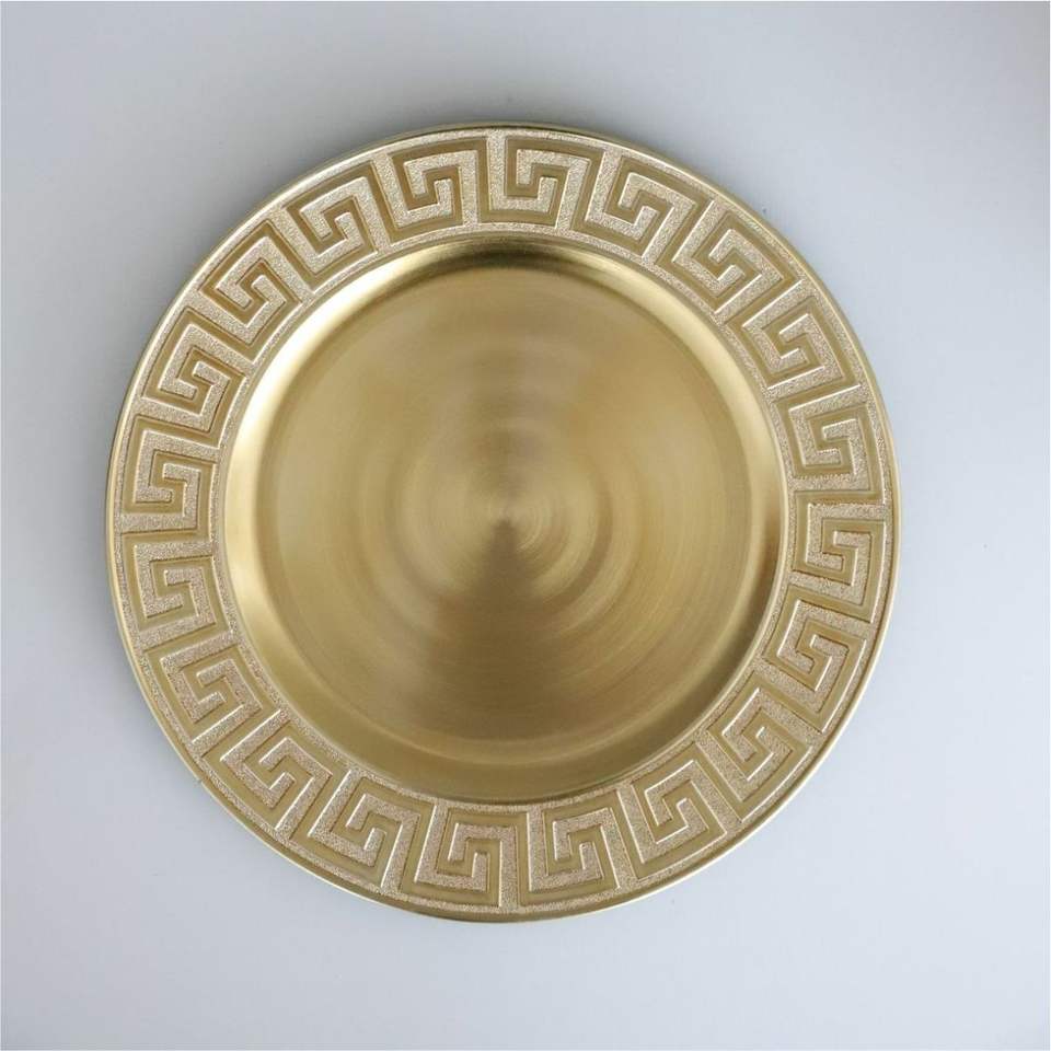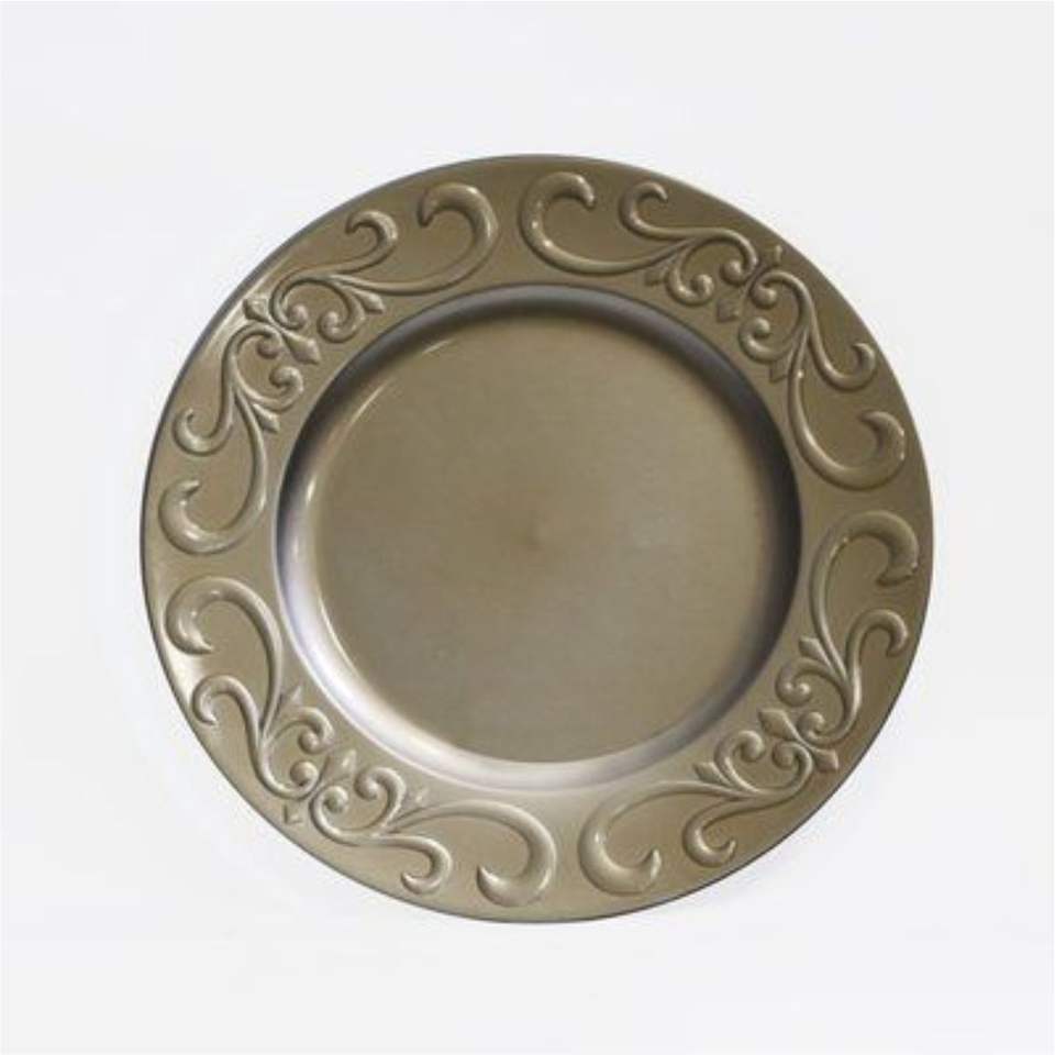 จานรองอาหารโลหะเงินตอกลายหรูหรา ขนาด 13 นิ้ว จานรองอาหารตกแต่งสำหรับงานแต่งงานและงานอีเว้นท์ จานรองโลหะ