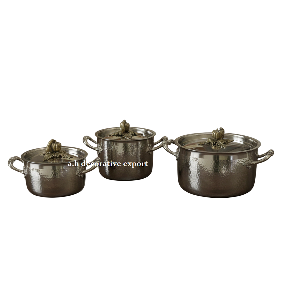 ชุดหม้อสแตนเลสสตีลคุณภาพสูง ลายตอกแบบหรูหรา เป็นมิตรกับสิ่งแวดล้อม พร้อมหูจับและฝาปิดลายฟักทอง