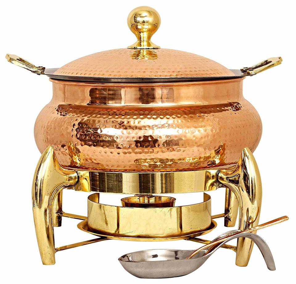 จานอุ่นอาหารทำจากทองแดงทำจากเหล็กสุดหรูอุปกรณ์สำหรับจัดเลี้ยงบุฟเฟ่ต์อาหารสำหรับงานแต่งงานร้านอาหารโรงแรมและงานเลี้ยงที่บ้าน