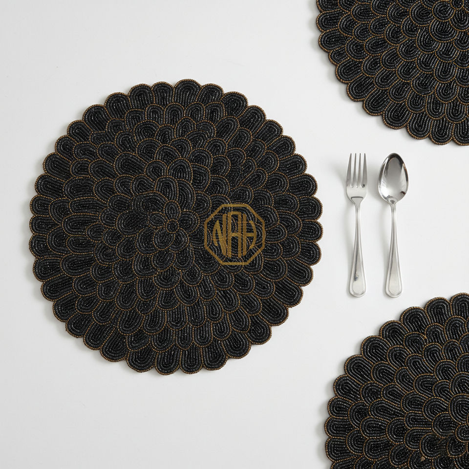 ชุดแผ่นรองจานปักลายดอกไม้หรูหรา งานปักมือ คุณภาพส่งออก รับออกแบบตามสั่ง ขายส่ง