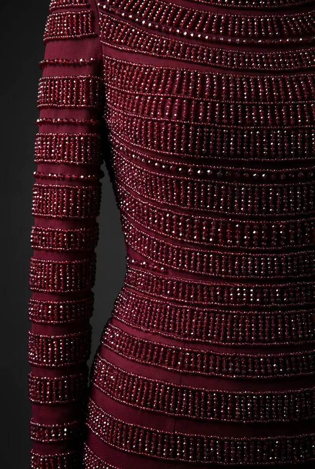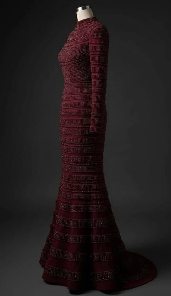 ชุดราตรีหรูหราประดับด้วยลูกปัด คอสูง แขนยาว ทรงเมอร์เมด สั่งตัดได้ ขายส่ง