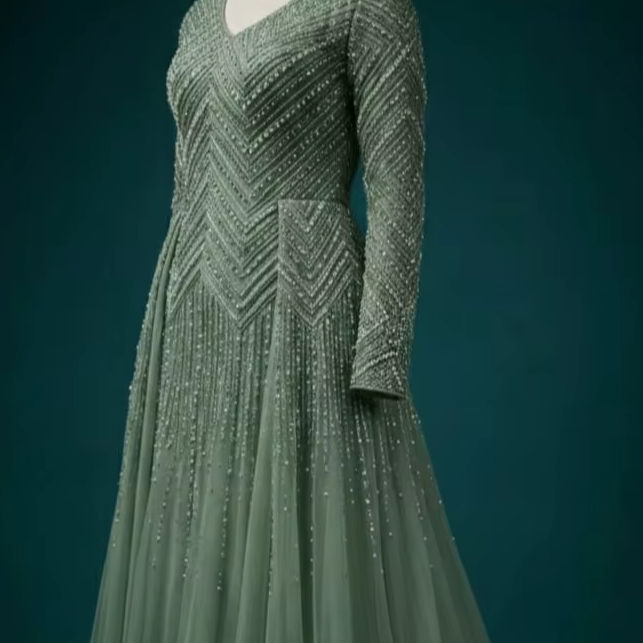 ชุดราตรีประดับลูกปัดทำมือสุดหรูสำหรับผู้หญิง | ชุดเดรสปาร์ตี้คอวีแขนยาว | ชุดสูทสั่งตัดขายส่ง