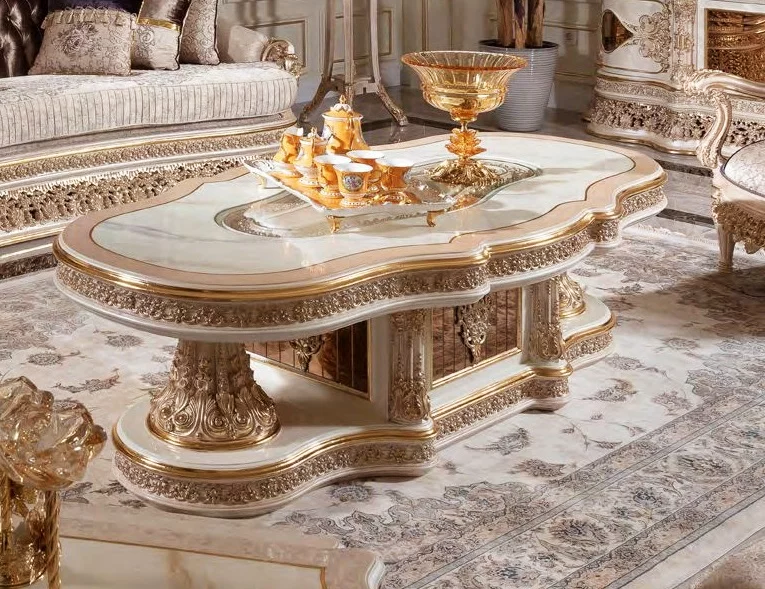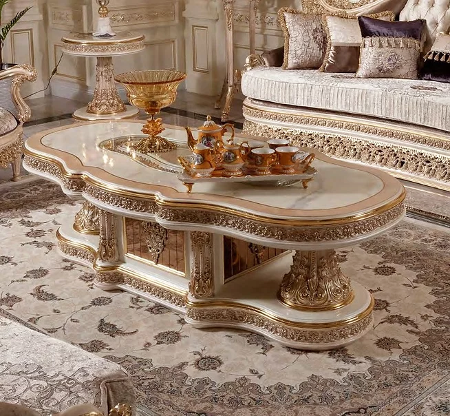 ชุดโซฟาสไตล์ราชวงศ์ทันสมัยทำจากไม้มะฮอกกานีขนาดกลางโต๊ะวิลล่าห้องรับแขกโรงแรมเฟอร์นิเจอร์311