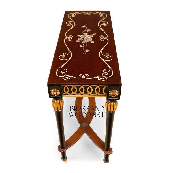 โต๊ะคอนโซลคลาสสิกหรูหรา วาดลายด้วยมือ พร้อมตกแต่งด้วยสีทอง