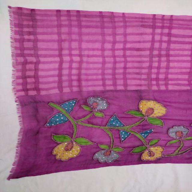 100%WOOL HAND PRINTED WITH EMB SCARF