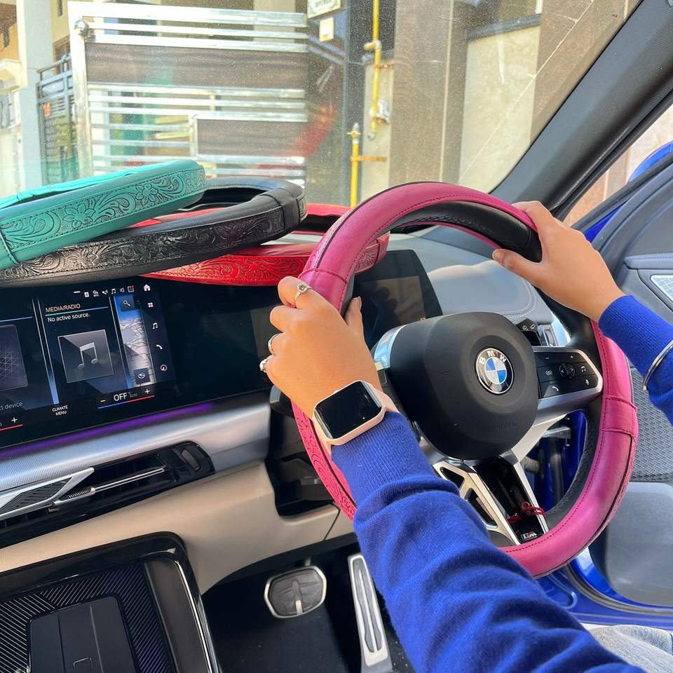 ปลอกหุ้มพวงมาลัยหนังแท้ลายดอกไม้สไตล์ตะวันตก แบบสากล ป้องกันการลื่น จับกระชับมือ ให้ความสบาย