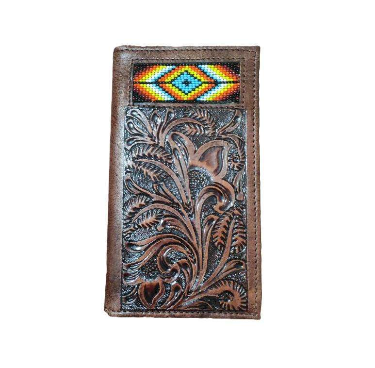 กระเป๋าสตางค์แบบยาวเครื่องมือมือสุดหรูสำหรับผู้ชายหนังวัวแท้พร้อมลูกปัดประดับด้วยศิลปะและป้องกัน RFID แบบเต็มรูปแบบ