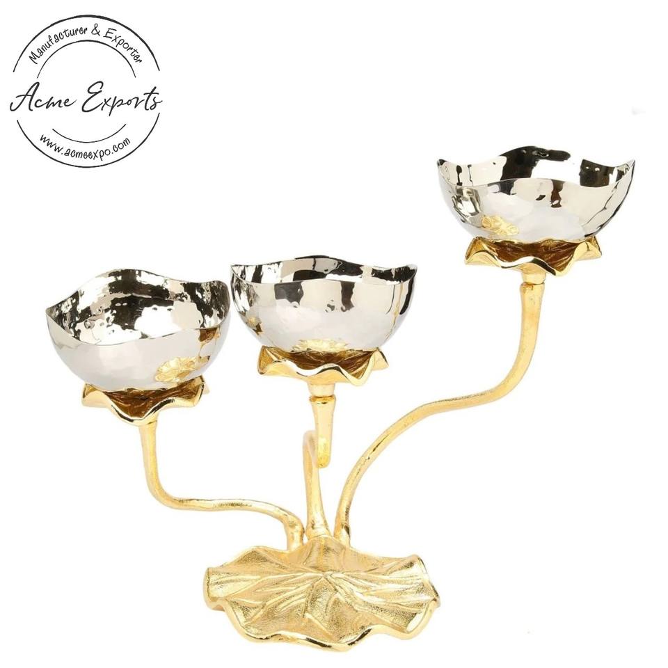 ชามสแตนเลสสตีล3ข้อสุดหรูพร้อมฐานอลูมิเนียมสำเร็จรูปสีทองใช้สำหรับวางบนโต๊ะอาหาร