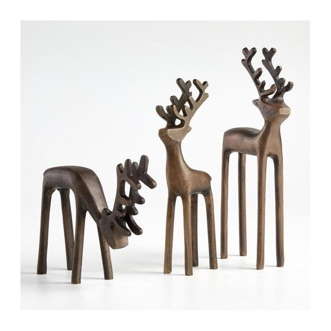 รูปปั้นกวางเรนเดียร์คริสต์มาสอะลูมิเนียมทำมือสุดหรูสำหรับตกแต่งบ้านและสวน พร้อมเคลือบทองโบราณ