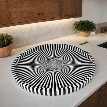 ถาดเสิร์ฟทรงกลมฝังลายกระดูกทำมือสุดหรู พร้อมลวดลายดอกไม้และใบไม้ประณีต สำหรับตกแต่งโต๊ะกาแฟ โดย f s i