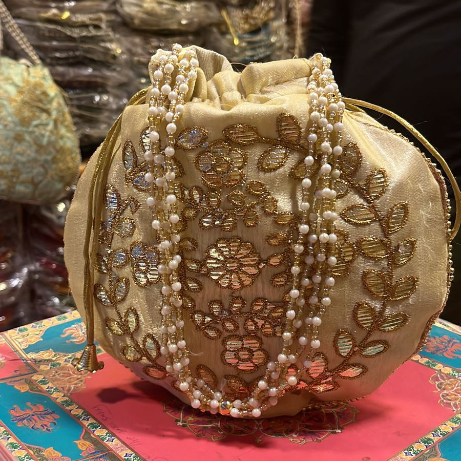 กระเป๋า potli ปักด้วยมือสุดหรูที่มีสีแตกต่างกันสีทอง zari ทำงานลูกปัดกระเป๋าข้อมือสำหรับของขวัญแต่งงาน