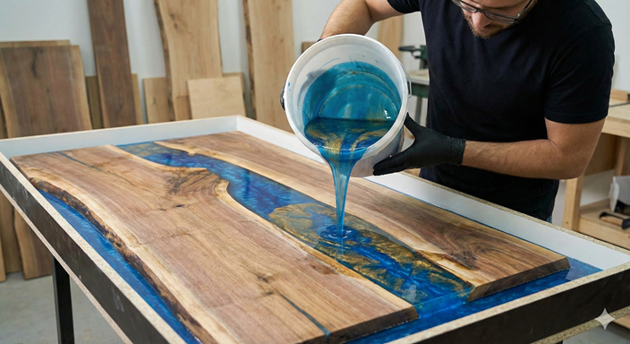 โต๊ะรับประทานอาหารไม้กระถินทรงสี่เหลี่ยมผืนผ้าเคลือบอีพ็อกซี่เรซิ่น งานแฮนด์เมดสุดหรู ดีไซน์ทันสมัย กันน้ำ แบรนด์ Sack สำหรับห้องนั่งเล่น