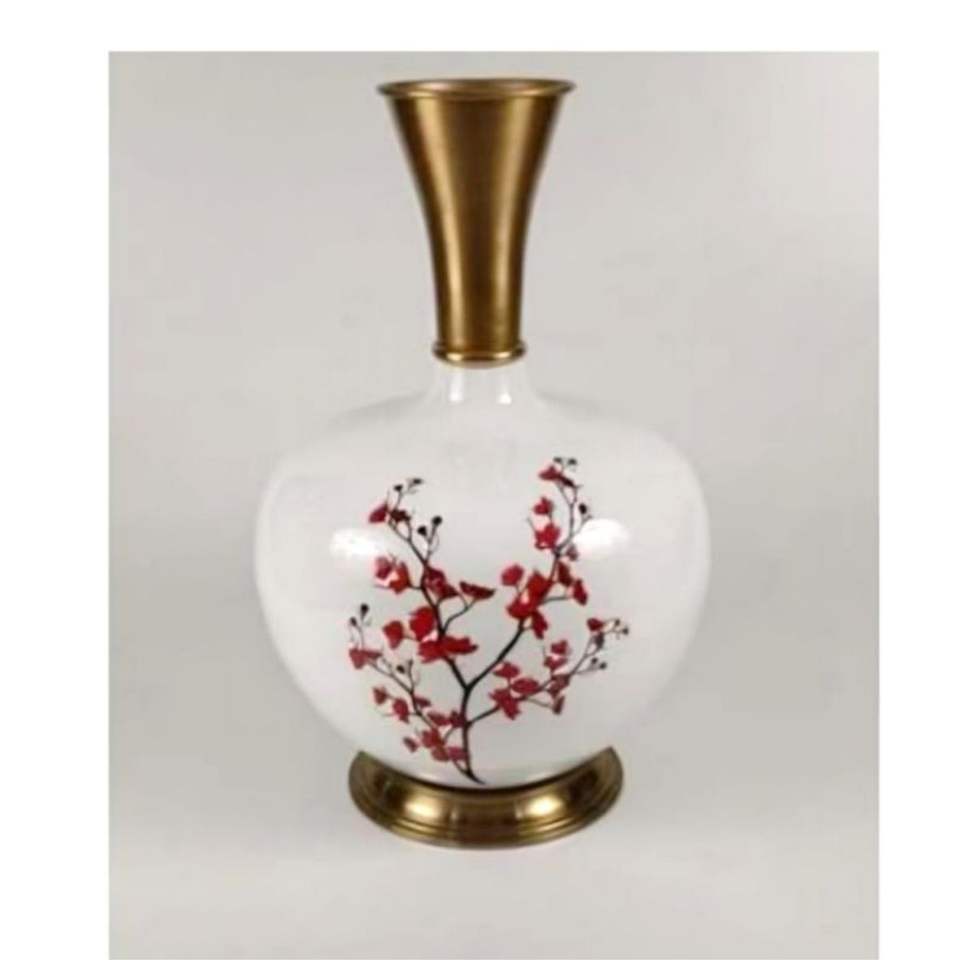 แจกันโลหะเคลือบลายดอกไม้สุดหรู งานฝีมือประณีต ตกแต่งสไตล์โคลอซอนเน่ แจกันทรงขิงโบราณ สำหรับตกแต่งบ้าน โรงแรม งานแต่งงาน