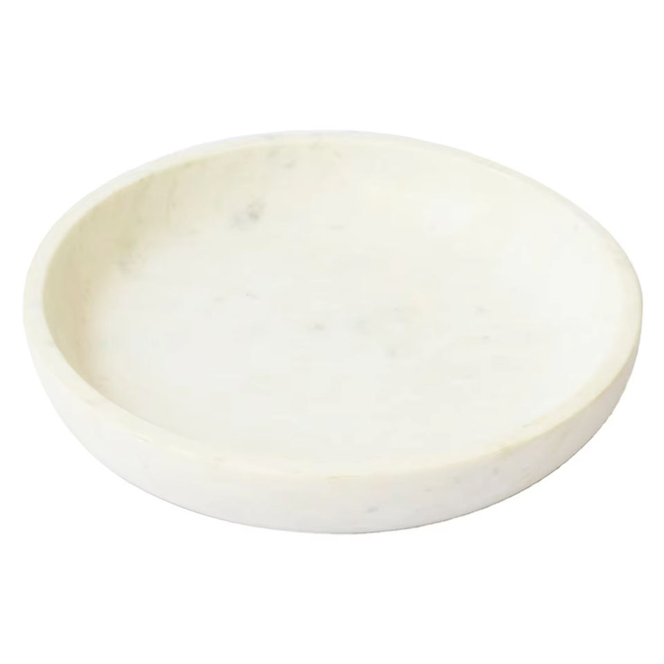 ชามเสิร์ฟทรงกลมหินอ่อนธรรมชาติทำมือสุดหรู ภาชนะหินอ่อนทันสมัยสำหรับโต๊ะอาหารในครัว จัดแสดงอาหาร ขายส่ง