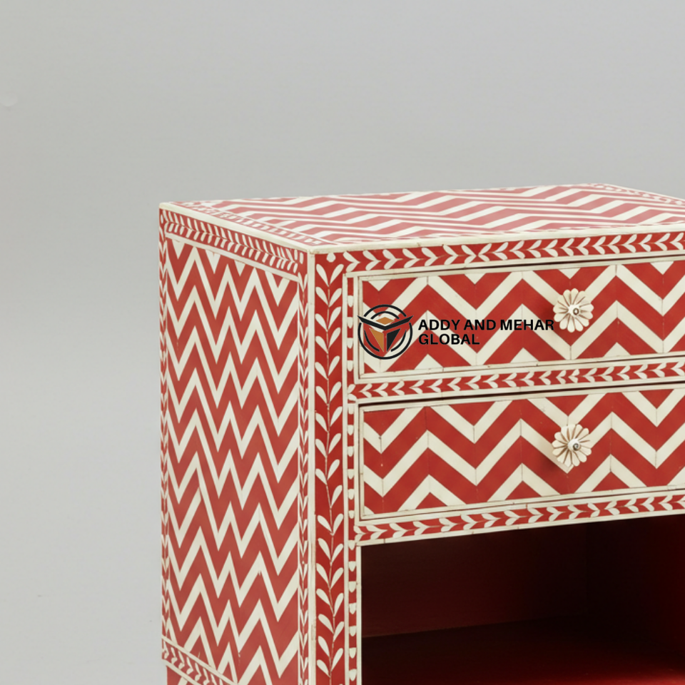 โต๊ะข้างเตียง3ลิ้นชักลายดอกไม้แบบฝังลายกระดูกสีแดงทำด้วยมือสุดหรู