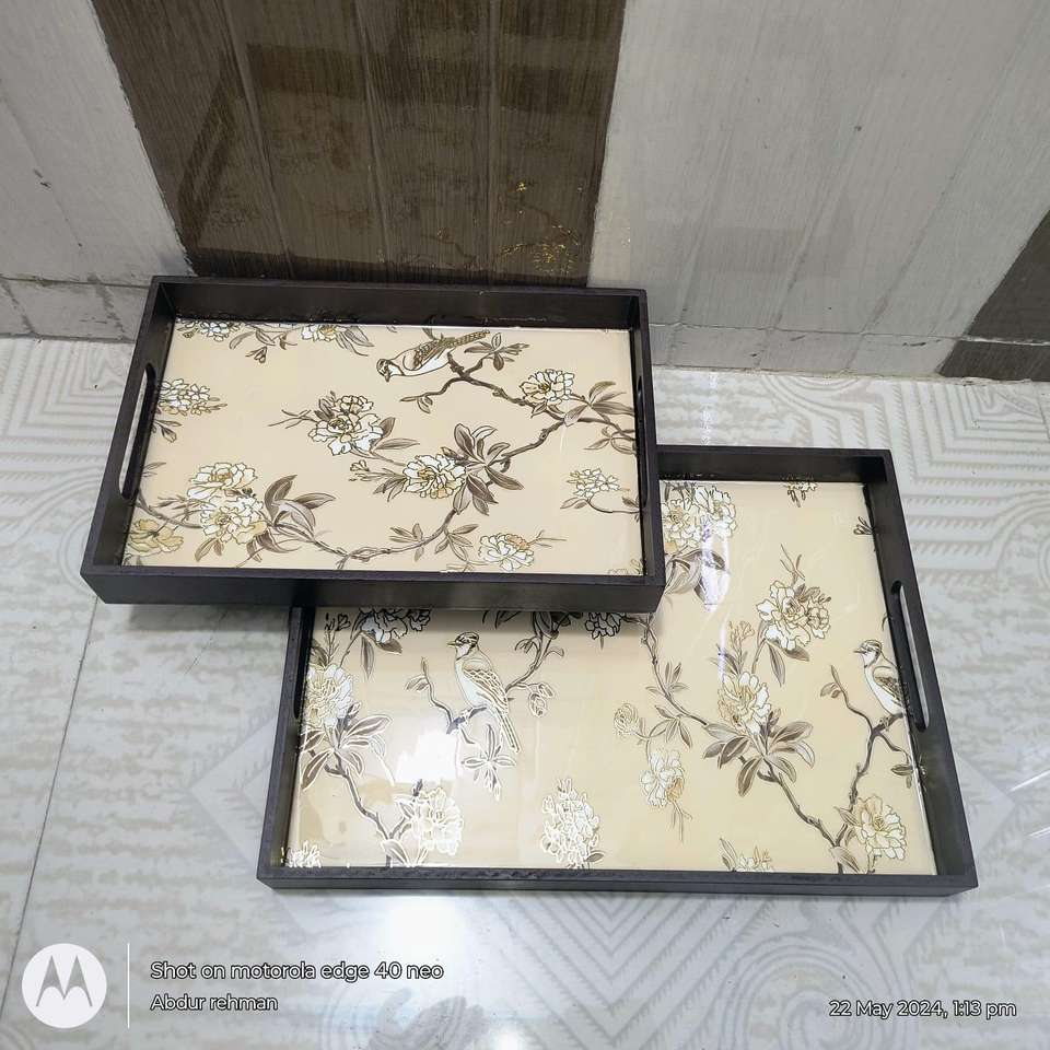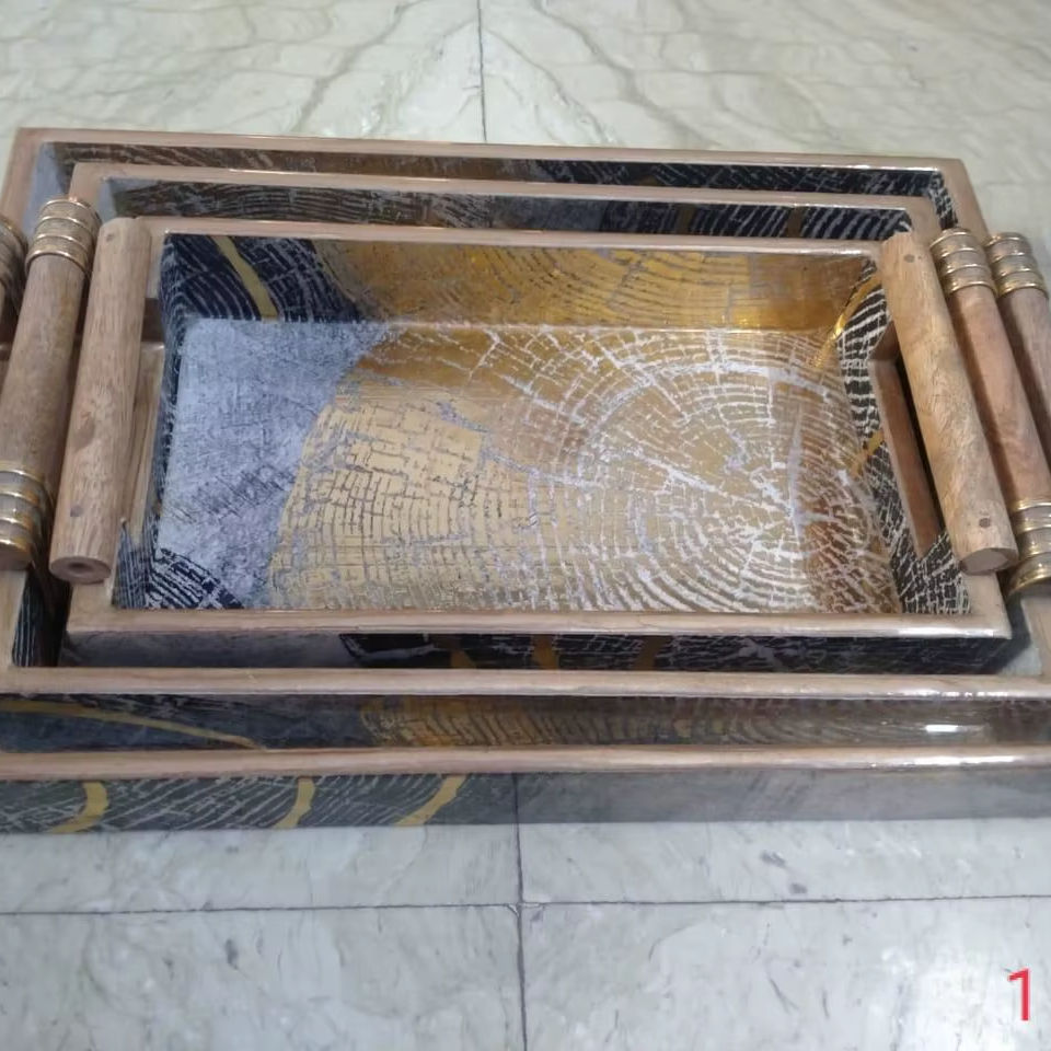 ถาดเสิร์ฟไม้ทรงกลมสุดหรู พร้อมลวดลายเคลือบสวยงาม ถาดตกแต่งทำมือจากอินเดีย มีจำหน่ายแล้ว