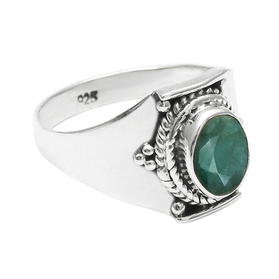 แหวนอัญมณีสีเขียวมรกตธรรมชาติทำด้วยมือสุดหรูแหวนอัญมณีเงินสเตอลิง925 100% แฟนซีรูปไข่สำหรับผู้หญิง