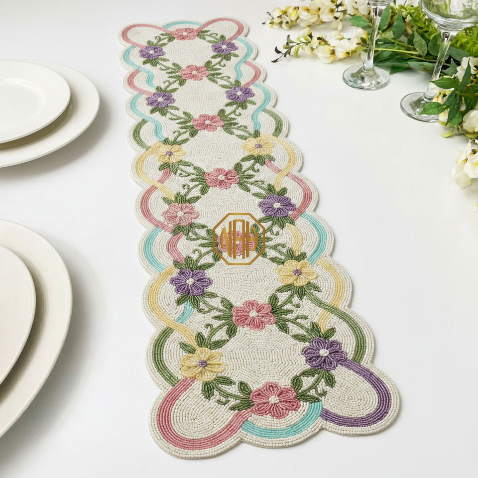 ผ้าปูโต๊ะปักลายลูกปัดหรูหรา ขนาด 36 นิ้ว ทำด้วยมือ ลูกปัดแก้ว รับสั่งทำตามจำนวนขั้นต่ำ