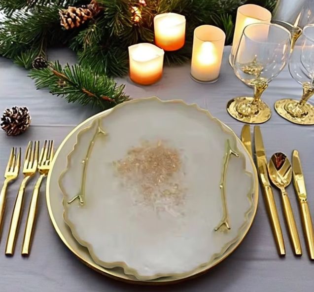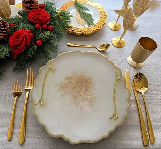 ถาดเสิร์ฟเรซิ่นทรงนางฟ้าทำมือสุดหรู ทนทาน รูปทรงกลมเคลือบเงา ถาดเสิร์ฟอาหารตกแต่งสวยงาม ถาดเรซิ่นสำหรับโต๊ะกาแฟ