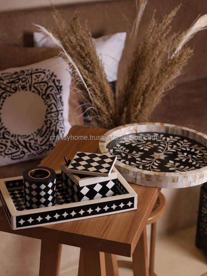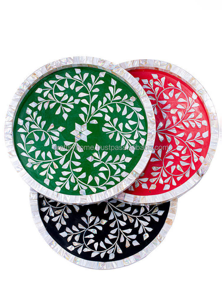ถาดอะคริลิคสไตล์อาหรับทำด้วยมือสุดหรูถาดใส่อาหารฝังมุกแม่สำหรับเสิร์ฟอาหารที่บ้านห้องครัวตกแต่งคุณภาพสูง