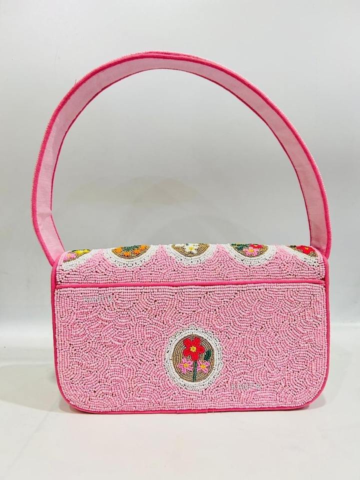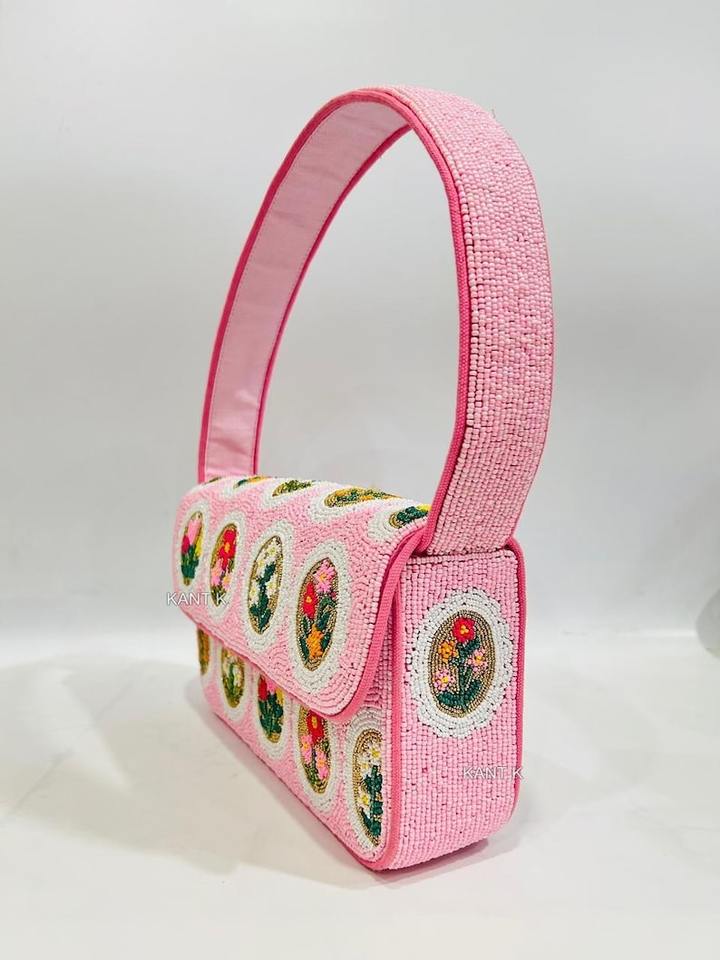 กระเป๋าถือลูกปัดทำมือสุดหรู ดีไซน์ลายดอกไม้ สำหรับผู้หญิง เหมาะสำหรับงานกลางคืน