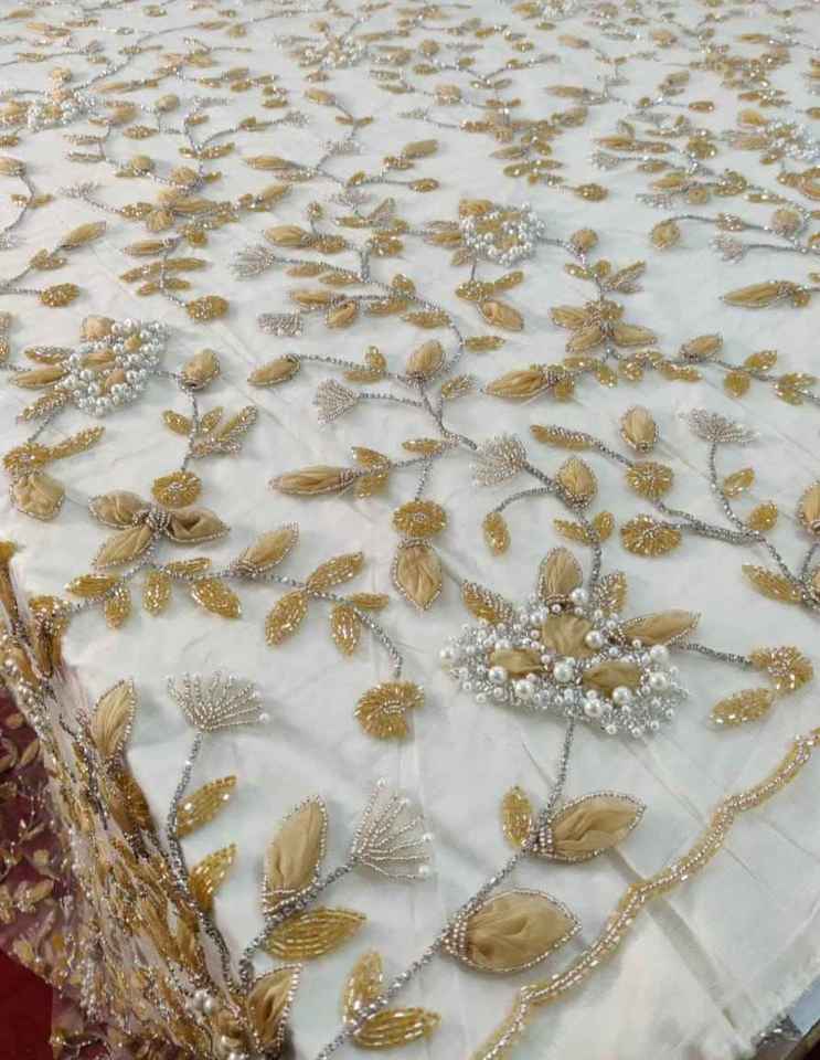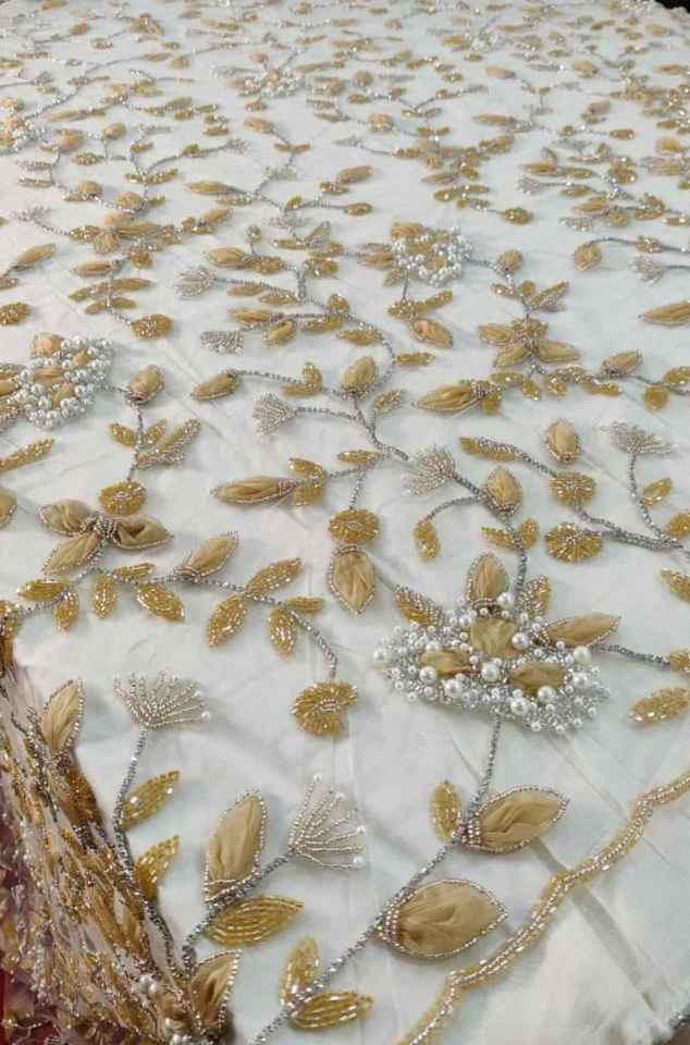 ผ้าลูกไม้ประดับลูกปัดทำมือสุดหรู พร้อมเลื่อมและมุก สำหรับชุดแต่งงานและชุดราตรี ขายส่งจากโรงงาน