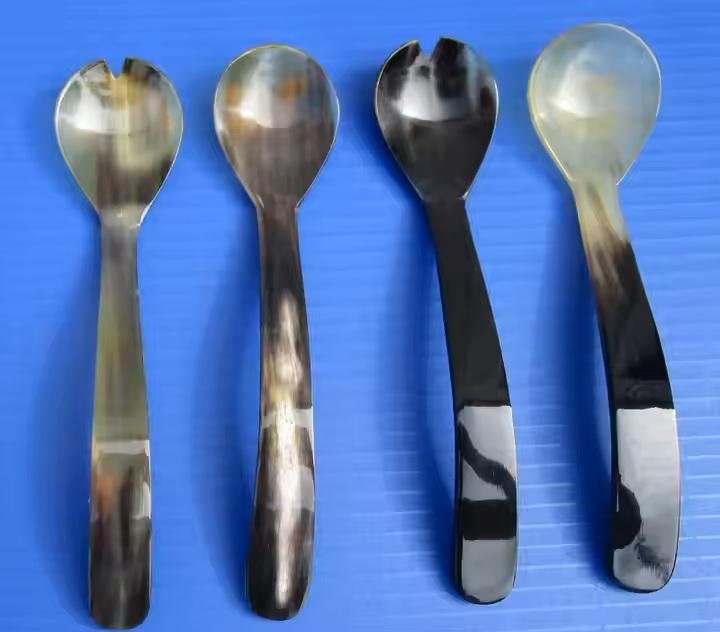 ชุดช้อนตักสลัดควายฮอร์นทำมือสุดหรูดีไซน์ขัดมันสำหรับบ้านหรือโรงแรมห้องครัวงานฝีมือตามธรรมชาติ