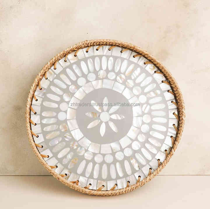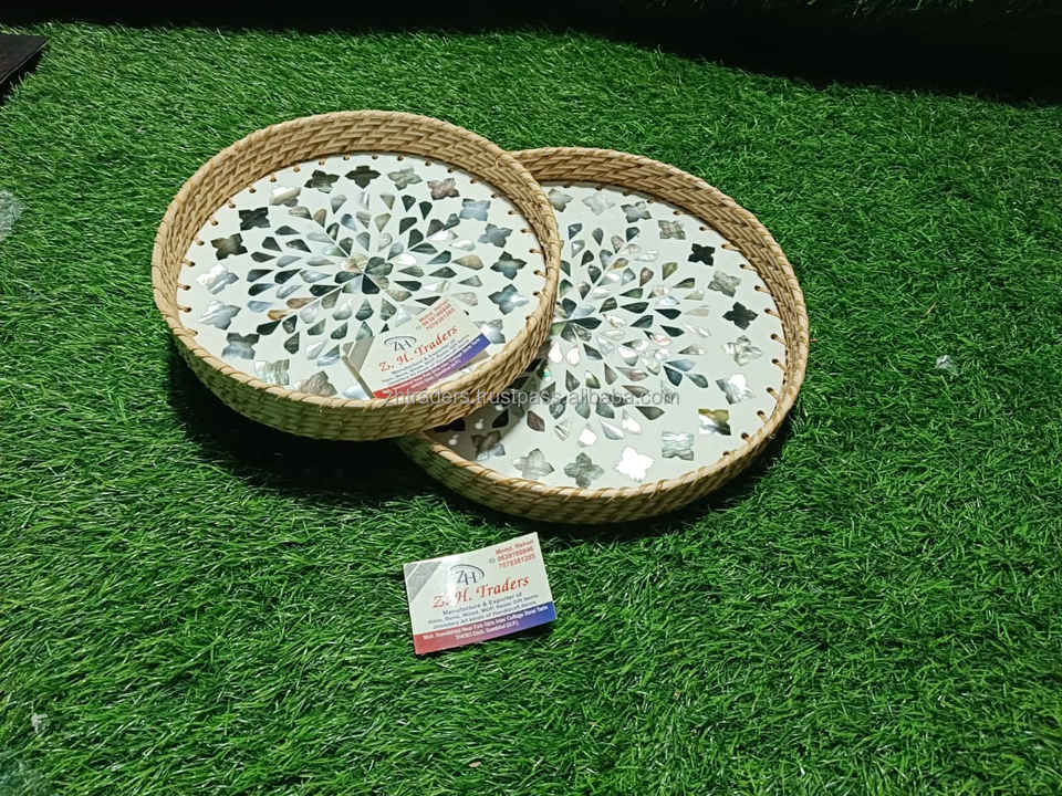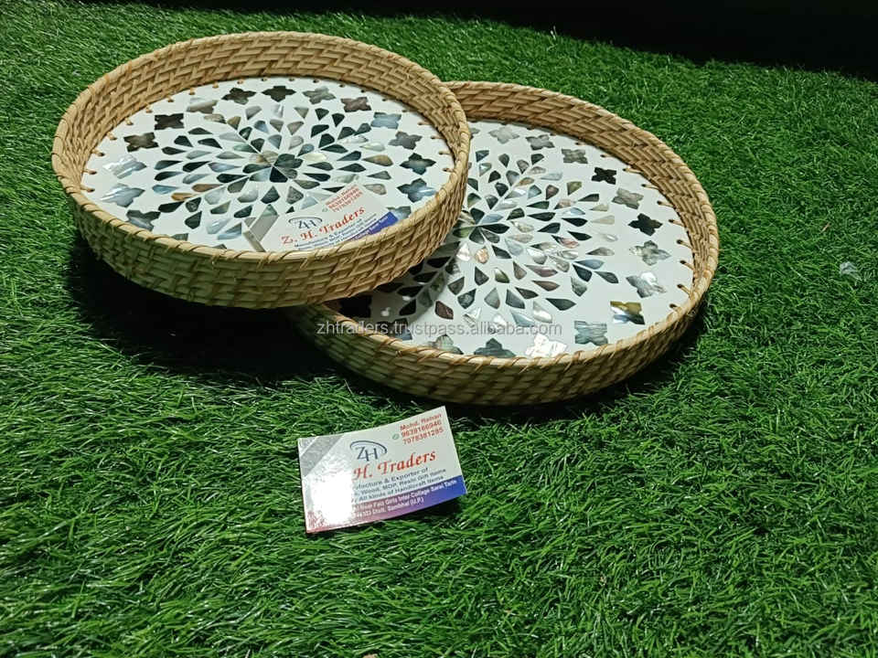 Decorative Dessert and Dry Fruit Trays for Wedding GiftsLuxury Handmade Cane Tray Set with Sparkling Mother of Pearl Inlay