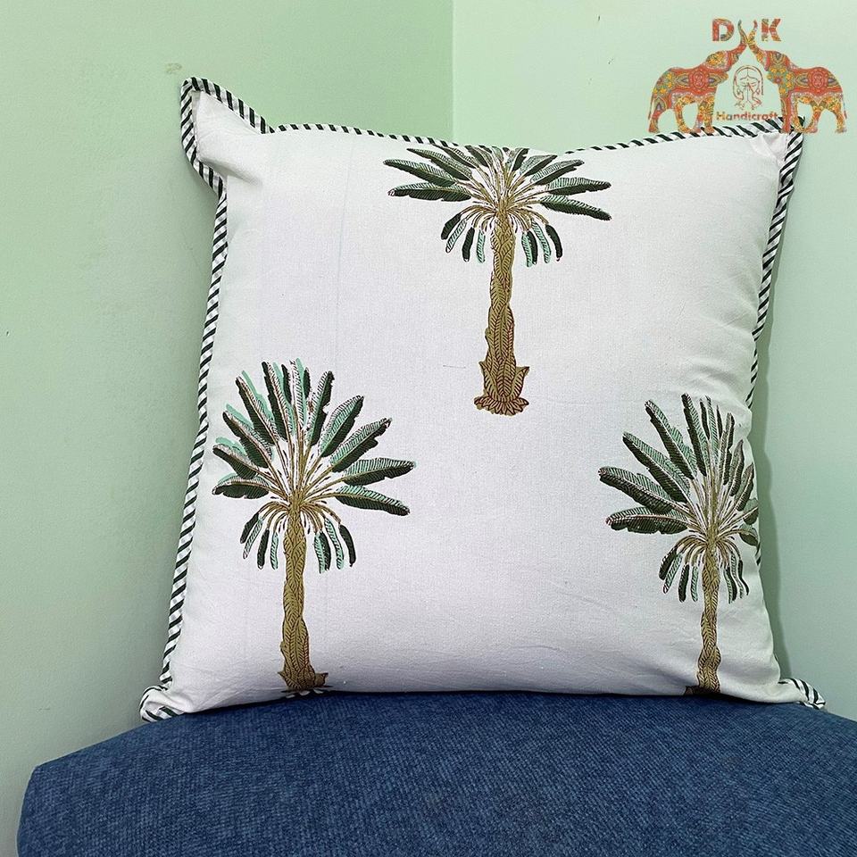 ปลอกหมอนผ้าฝ้ายสำหรับโซฟารถยนต์และบ้านพิมพ์ลายบล็อกมือหรูหรา
