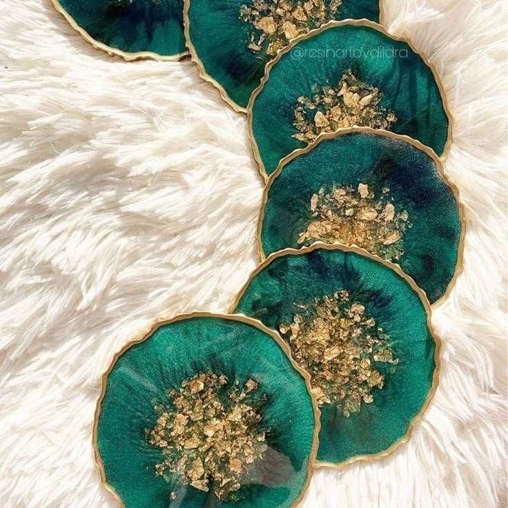 ชุดถาดรองแก้วทำจากยางเรซินทำด้วยมือสีทองสำหรับโต๊ะในสำนักงาน