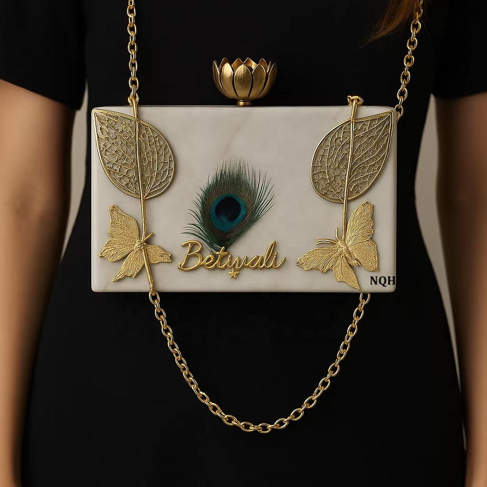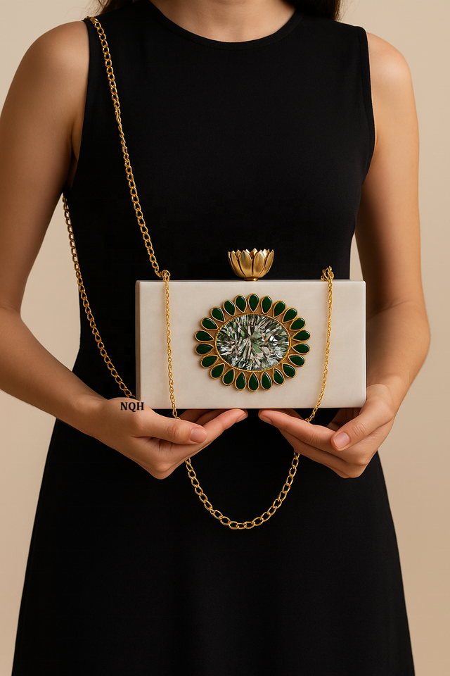 Luxury Handmade Durable Eco-Friendly Lightweight Wood Resin Clutch Dot Crossbody Chain Purse Custom Logo Evening Bag Women