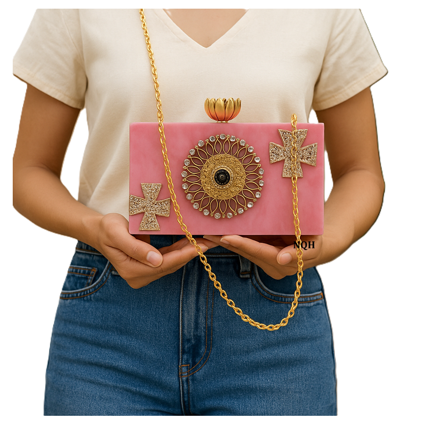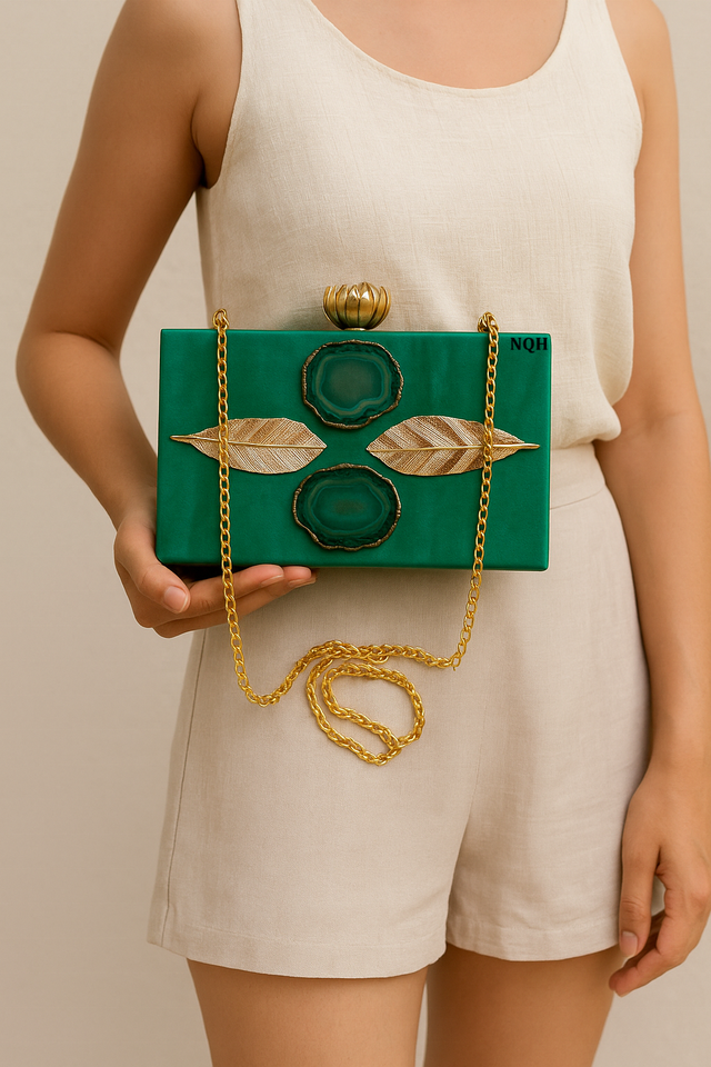 กระเป๋าคลัทช์ไม้เรซิ่นทำมือสุดหรู ทนทาน เป็นมิตรกับสิ่งแวดล้อม ดีไซน์ลายเรขาคณิต พร้อมสายสะพายโซ่ รับทำโลโก้ กระเป๋าสำหรับออกงานกลางคืน