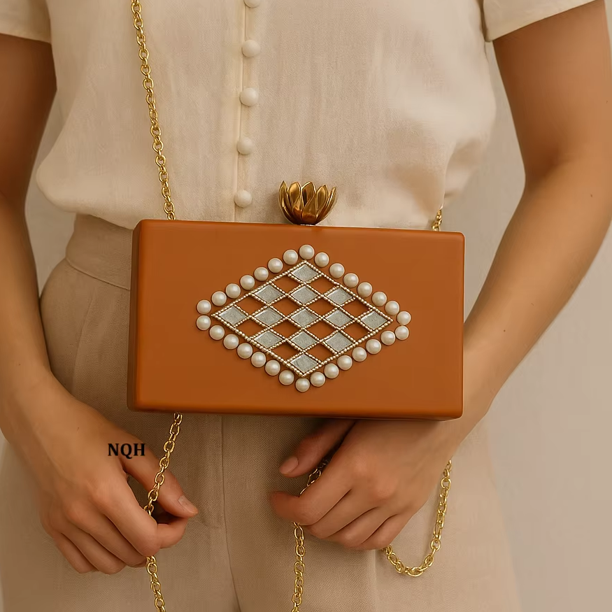 กระเป๋าคลัทช์ไม้เรซิ่นทำมือสุดหรู ทนทาน เป็นมิตรกับสิ่งแวดล้อม ลายจุด เปิดปิดแบบง่าย สายสะพายโซ่ รับทำโลโก้ กระเป๋าสำหรับออกงานกลางคืน