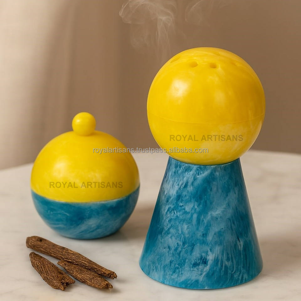 เตา bakhoor ไม้จันทน์สีเหลืองเป็นมิตรต่อสิ่งแวดล้อมทำด้วยมือหรูหรา | กรวยกระจายกลิ่นหอมทันสมัย | ของขวัญรอมฎอน Eid Royal