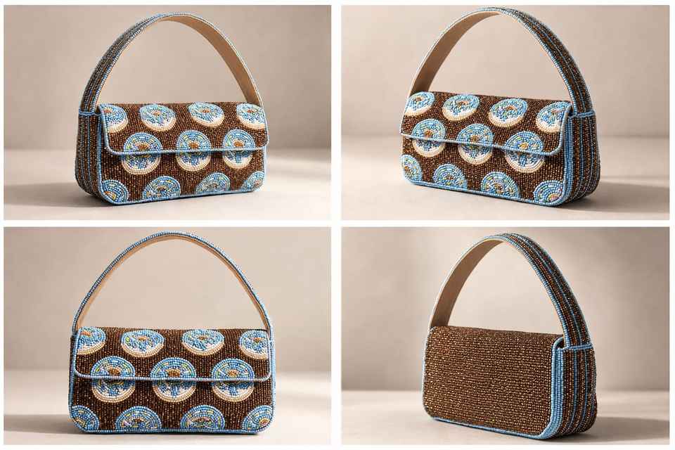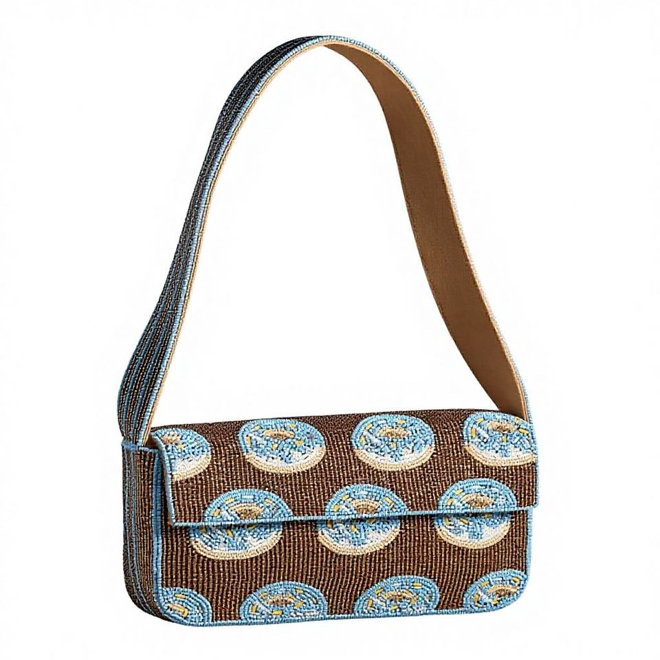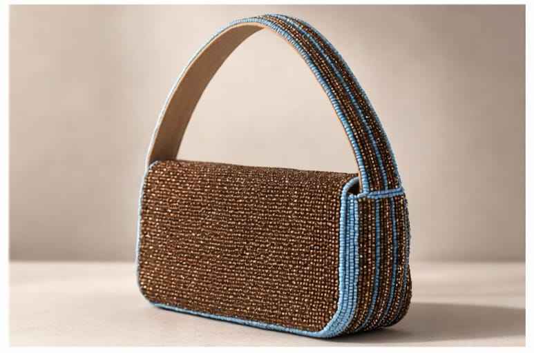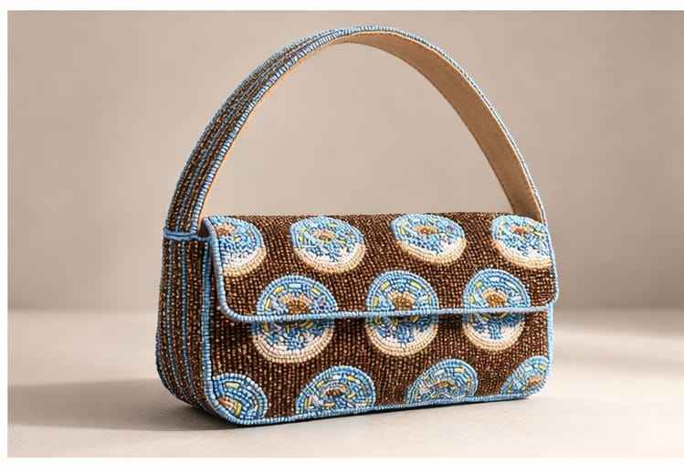 กระเป๋าถือสะพายไหล่สำหรับผู้หญิง งานแฮนด์เมดสุดหรู สีน้ำตาล-น้ำเงิน ประดับมุก พู่ห้อย ลูกปัด รูปทรงสี่เหลี่ยม เหมาะสำหรับงานเลี้ยงตอนเย็น ฤดูใบไม้ผลิ ฤดูร้อน ใช้ได้ทั่วไป หรือเป็นของขวัญ
