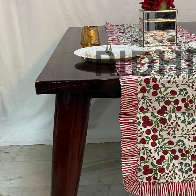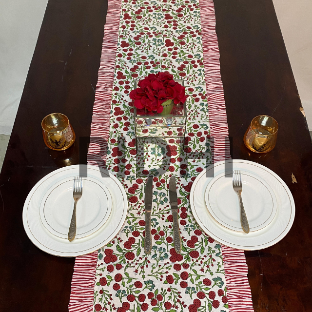 ผ้าปูโต๊ะอาหารผ้าฝ้ายเนื้อนุ่ม 100% พิมพ์ลายด้วยมือ ลายดอกไม้ประดับพลอยแดง งานฝีมือสุดหรู ปรับแต่งได้ ซักเครื่องได้
