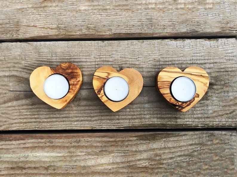 เชิงเทียนไม้มะกอกรูปหัวใจขนาดเล็กทำมือสุดหรูสำหรับขายส่ง โคมไฟตกแต่ง